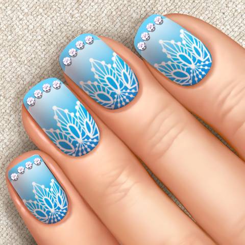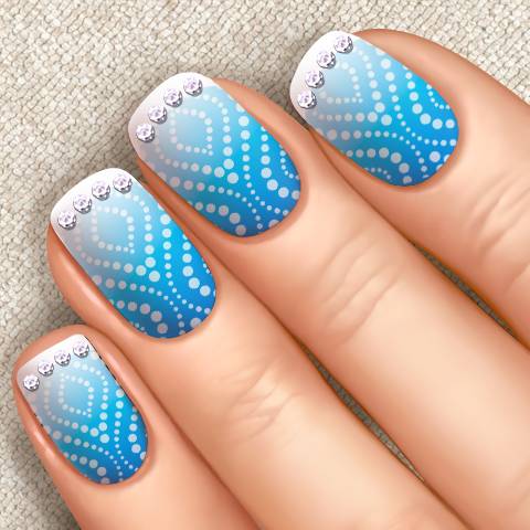 Переход от белого к голубому остаётся одним из главных зимних трендов. Такие градиентные переходы напоминают зимнее небо. Такой маникюр добавляет свежести и лёгкости зимнему образу.